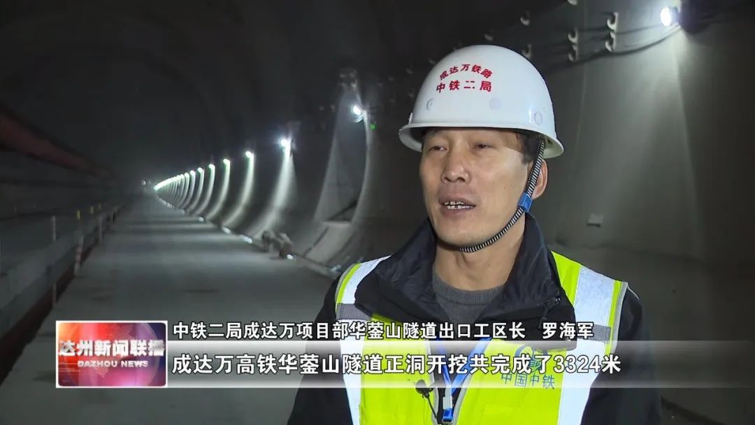 中铁二局成达万项目部华蓥山隧道出口工区长 罗海军:截至目前,成达万高铁华蓥山隧道正洞开挖共完成了3324米,横洞完成了1482米,横洞平导开挖完成了306米。年初业主下达的2022年施工计划任务是2276米, 目前已完成2700米,占年度计划117%。