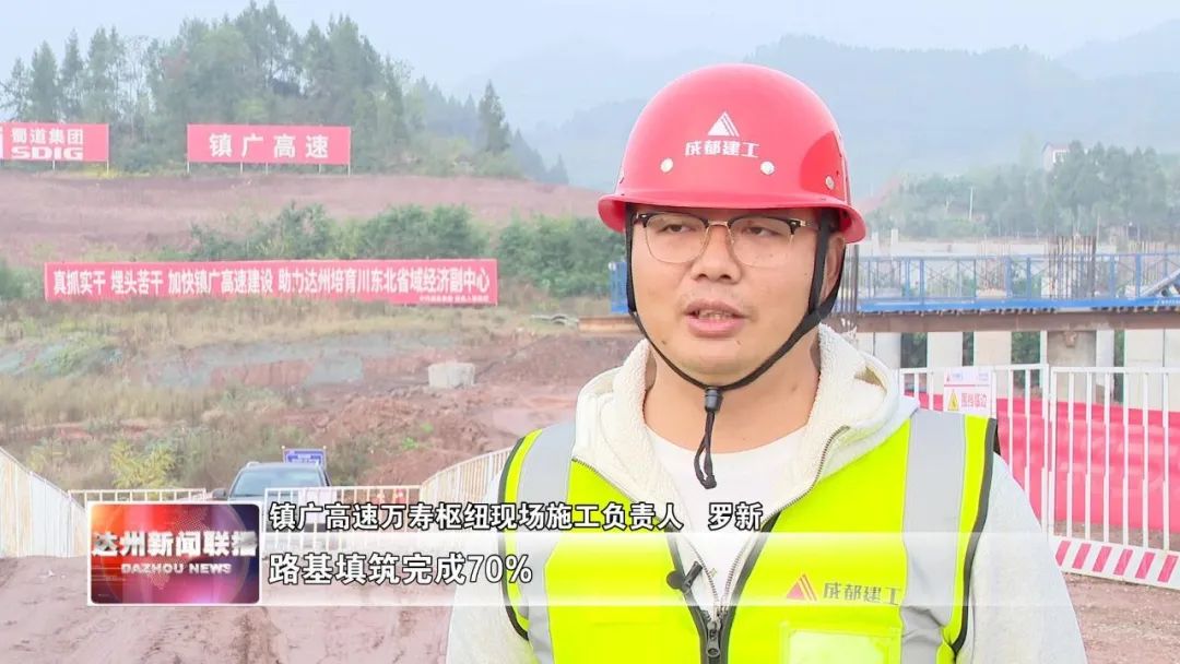 镇广高速万寿枢纽现场施工负责人 罗新:完成枢纽互通桥梁下部结构80%,路基填筑完成70%。