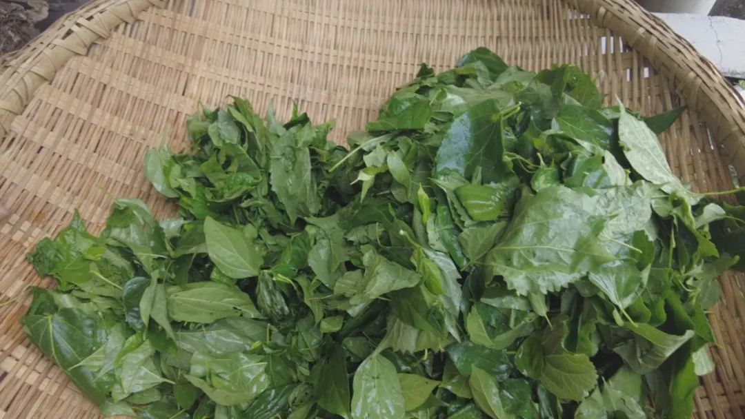 三汇镇山青村村民 欧在碧:从三四月间发起来就可以弄,那个时候(叶子)嫩,粉少,没有(现在)粉多,吃起来又是透凉的、败火的、清热的,安逸得很,是纯天然的。