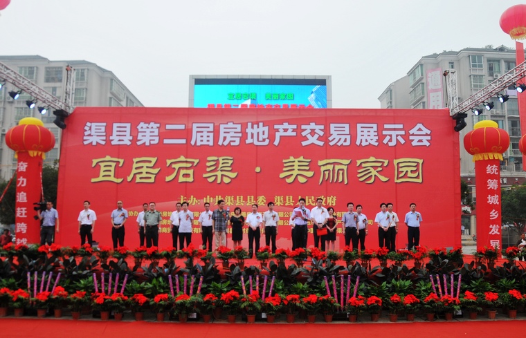 在欢腾的锣鼓声中,县委书记、县人大常委会主任王善平宣布:渠县第二届住房交易展示会开幕!