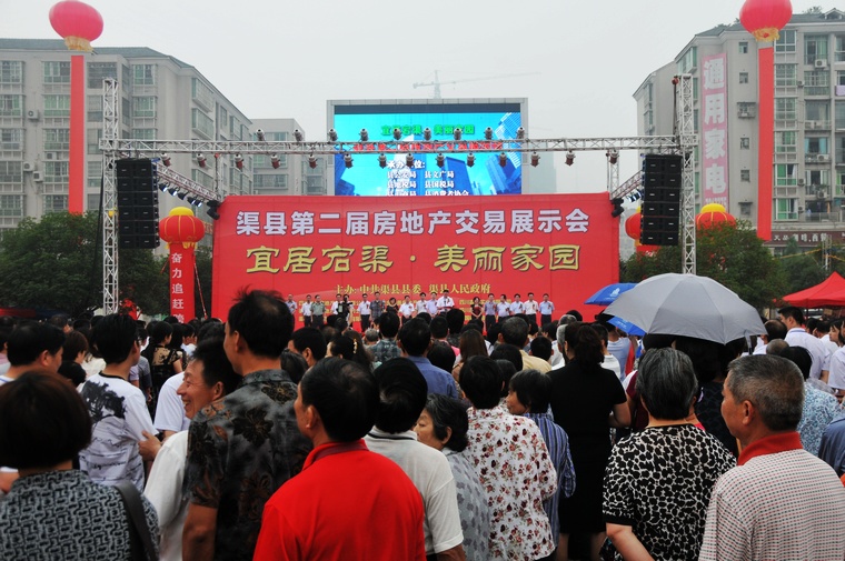 本届交易展示会以“宜居宕渠·美丽家园”为主题,用大量文字和图片,集中展示近10年渠县城乡建设成就,并通过房地产项目规划模型和户型展示,推介住房消费新理念。交易展示会现场占地面积3000多平方米,搭设展位44间,7家知名房地产开发企业和数家金融机构报名参展。