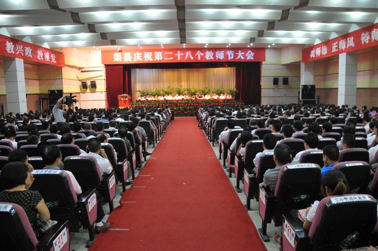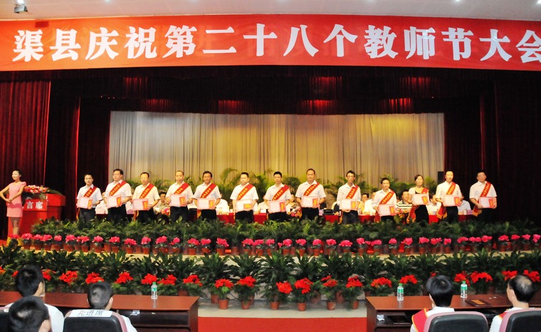 为激励全县教师争做良师,在全社会营造尊师重教的良好风尚,9月7日上午,我县隆重召开庆祝第28个教师节大会,对全县教育战线涌现出的优秀教师、优秀教育工作者进行表彰奖励,向广大教师送去节日的祝福。会议强调,要着力建强校长、班子、教师三支队伍,解决学校布局、资源整合、综合评价三大问题,全面振兴渠县教育,实现“一年打基础、两年见成效、三年上台阶”,为深入实施“科教人才兴县”战略,建设幸福渠县作出新的更大贡献。