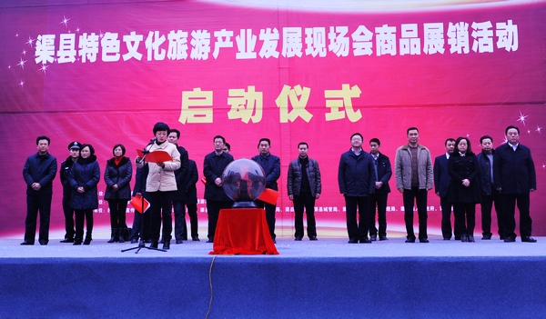 12月27日,渠县特色文化旅游商品展销活动在渠县万兴广场正式启动。县委书记、县人大常委会主任王善平宣布渠县特色文化旅游展销活动正式启动。县委副书记、县长苟小莉在启动仪式上致辞。