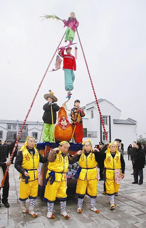 村民正在表演“三汇彩亭”。
