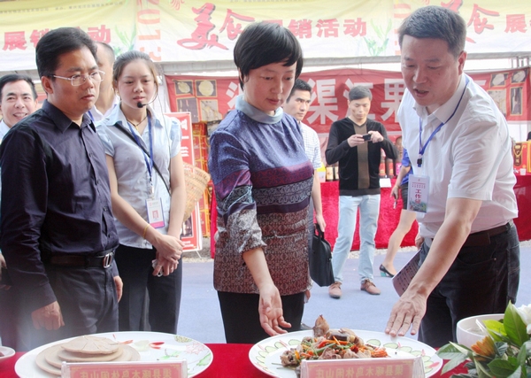 走进美食展区,热闹非凡,品尝美食的市民“包围”了各个摊位。宕渠餐饮文化独具特色,近年来随着渠县特色文化旅游产业发展步伐的加快,三汇鸡八块、涌兴卢板鸭、乡村水滑肉、古今香丸子、宕渠坨坨鸡、三汇心肺汤圆、农家豌豆面糊等渠县地方名优小吃和特色食品,知名度不断扩大,品牌包装不断上档次、上台阶,得到省内外宾客及当地群众的一致好评和喜爱。在旅游商品方面,渠县也初步打造了刘氏竹编、渠县黄花、宕府王呷酒、三汇特醋等一批旅游商品品牌,丰富了旅游购物市场。