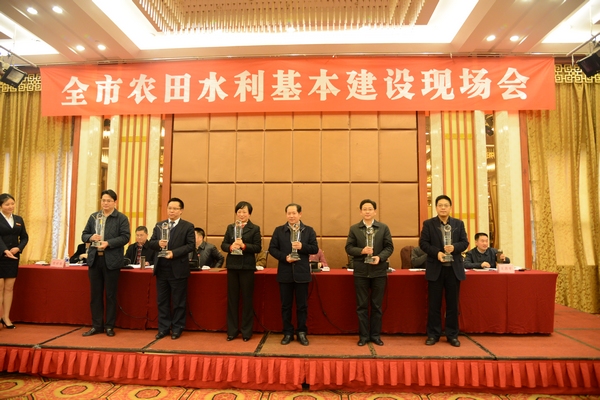 市委常委、市总工会主席陈中华宣读市委办公室、市政府办公室《关于表扬2013年度农田水利基本建设“甘露杯”竞赛活动先进集体的通报》;副市长王全兴传达全省农田水利基本建设暨农村饮水安全工作现场会议精神。市人大常委会副主任邹惠明,市政协副主席王善国出席会议。