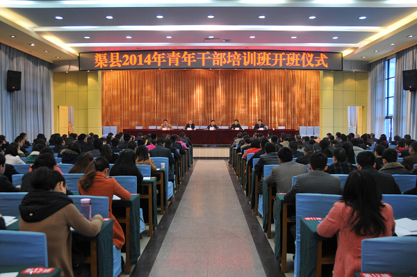 3月11日上午,渠县2014年青年干部培训班开班仪式在党校会议室举行。县委书记王善平作动员报告,他寄语全县青年干部要坚定理想信念,践行为民宗旨,勤奋务实工作,清正廉洁从政,加强学习,勇于实践,不断提高自己的综合素质和工作能力,在全面推进“统筹城乡发展、建设幸福渠县”的征程中建功立业。
