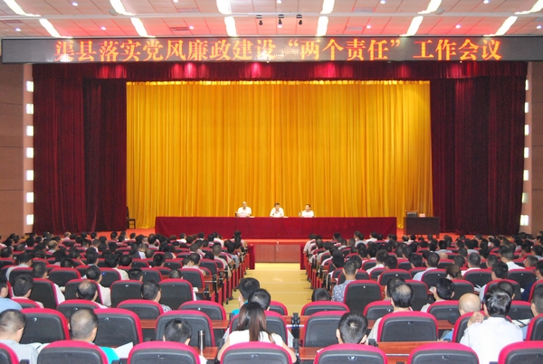 7月14日,我县落实党风廉政建设“两个责任”工作会在县会议中心举行。会议认真学习了中央、省委和市委关于“两个责任”的重大决策部署,贯彻落实省委关于落实党风廉政建设党委主体责任和纪委监督责任的意见,推动了我县党风廉政建设和反腐败工作深入开展。县委书记王善平强调,要以高度的政治责任感和使命感,切实抓好全县“两个责任”的落实,为“统筹城乡发展、建设幸福渠县”提供坚强的纪律保障。
