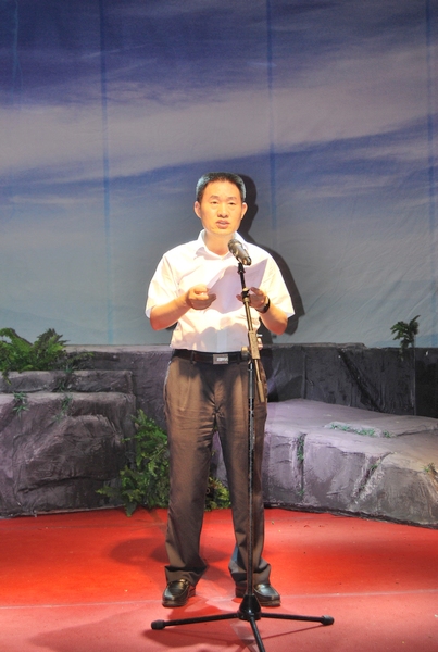 演出前,王善平致辞,他说,杨帮武同志任职村干部36年,他总结提炼的感恩教育聚民心、代办代诉暖民心、阳光议事顺赢民心、预防管理安民心”工作方法,独具特色,卓有成效。杨帮武同志在身患重病的情况下,依然为全村基础设施的改善,产业结构的调整忘我工作,他就是践行一切为了群众的榜样,就是我们群众路线教育实践活动学习的楷模。方言话剧《村官杨帮武》艺术的再现了杨帮武舍肾忘死的为民情怀。榜样的力量是无穷的,我们要通过认真组织观看《村官杨帮武》话剧巡回演出,激励全县党员干部学先进、比先进、赶先进,学习杨帮武同志甘于奉献,勇于担当,舍已为人的崇高精神,以群众路线教育实践活动为契机,把杨帮武精神落实到工作中,转变作风,服务群众,与实际行动和实际成效取信于民,为全面开创统筹城乡发展,建设幸福渠县作出新的更大的贡献。