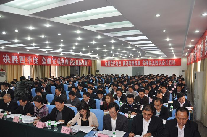 邓瑜华强调,各级各部门要以十七届四中全会精神为动力,把加强和改进党的建设与实现“四大奋斗目标”结合起来,与推进渠县加快发展结合起来,真正以党建导航发展、以党建保障发展,确保全面完成全年目标任务。今年前三季度,由于全县上下的共同努力,全县经济和社会发展实现了新突破,呈现出又好又快的发展态势,形成了心齐劲足风正气顺的良好局面。四季度是完成全年工作目标任务的决定性阶段,各乡镇各部门一定要强化时间观念和效率意识,以时不我待的精神强抓工作落实,坚定不移地完成年度任务,坚定不移地推进加快发展,坚定不移地确保和谐稳定,努力促进经济社会又好又快发展,不断开创全县党的建设和各项工作新局面,为早日实现渠县“四大奋斗目标”作出新的更大的贡献。
