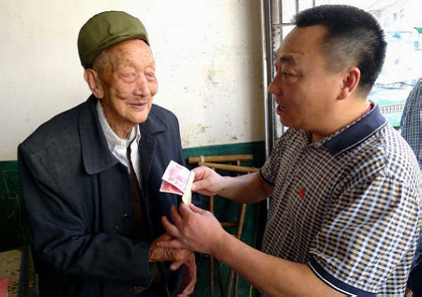 陈富一行首先来到青龙村二组103岁老人龚连一的家中,陈富与老人亲切交谈,详细询问老人的身体状况和生活起居情况,并为老人送上慰问金。临行前,一再叮嘱老人的子女们要细心照顾好老人的生活,为老人晚年生活保持良好的环境,让老人过得更加幸福。
