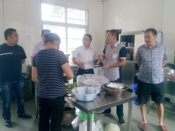 此次检查,一是了解学校食堂师生的生活用餐、查看购物登记薄、食品来源以及消毒柜等;二是对整个校舍、梯间通道和学生的活动场所及安全防护设施进行了查看;三是对校内水电气的使用、校外小卖部、接送学生车辆及学校的宣传标语、规章制度等都进行了一一检查。