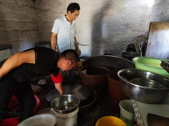 持续干旱以来,大义乡党委书记曾得彬、乡长王敬奎深入王友兰、瞿世全等农户家中,实地督查指导防汛抗旱和人畜用水保水工作。