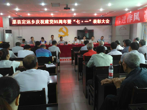 上午9点,乡党委副书记、乡长张海江宣布大会开始,全体起立,奏唱《中华人民共和国国歌》。乡党委副书记张雪梅宣读了《中共渠县定远乡委员会关于表彰先进党支部和优秀共产党员的决定》。定远乡社区支部委员会、团寨村支部委员会被表彰为“先进党支部”,叶本勇、雍尚超被表彰为“优秀党支部书记”,袁升国、郝仁强等16名同志被表彰为“优秀共产党员”。