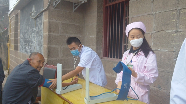 10月20日上午,重阳佳节前夕,贵福镇党委书记孙琳、镇长张良带领党委、政府一班人、民政工作人员、卫生院医务人员,前往敬老院看望慰问敬老院老人并开展送医送药送健康义诊活动。