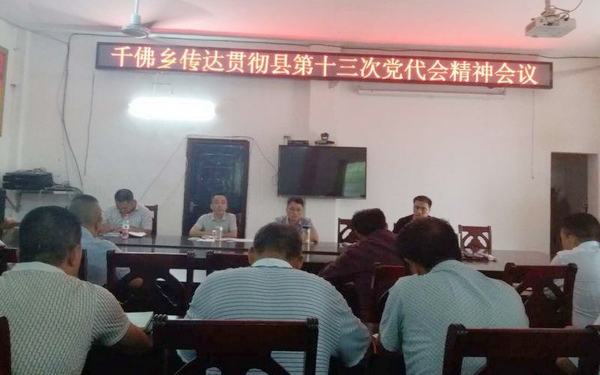9月13日下午,千佛乡传达贯彻县第十三次党代会精神。乡党委书记李波主持会议,乡机关全体工作人员、乡属单位负责人、各村(社区)书记、主任参加会议。
