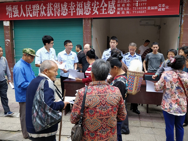 为深入贯彻落实党的十九大部署,有力惩处黑恶势力犯罪,严厉打击村霸、宗族恶势力、“保护伞”以及“软暴力”等犯罪,积极营造“扫黑除恶”浓厚氛围,维护辖区内和谐稳定,9月13日上午,贵福镇联合辖区内人民法庭、派出所、司法所集中开展“扫黑除恶”宣传活动。