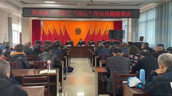 为扎实推进机关干部“四心”作风问题教育整顿工作,督促全体干部职工认真查摆,及时纠正纠偏正“四心”,3月31日,贵福镇召开干部职工“四心”作风问题座谈会,党委书记苟佳主持会议并讲话。