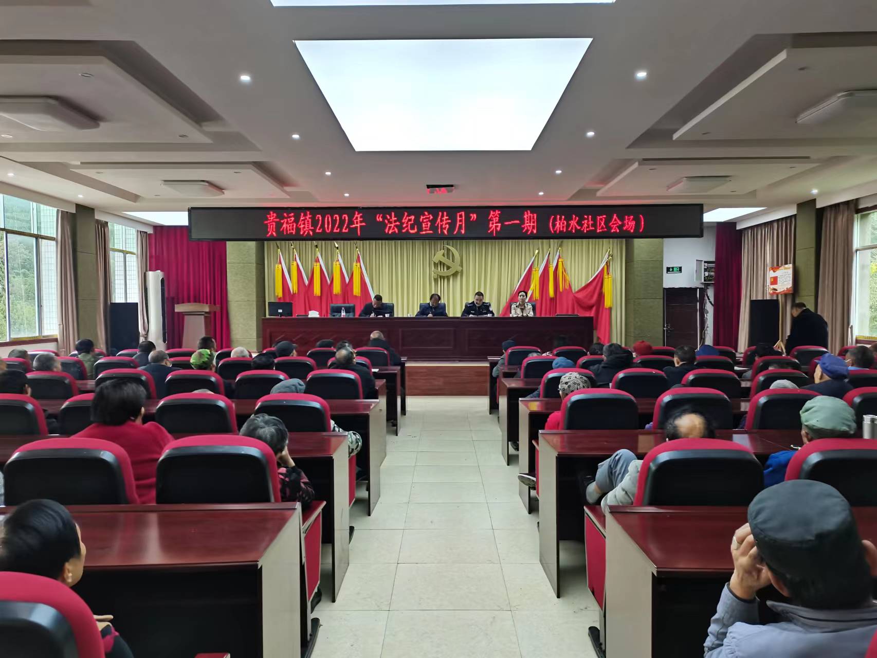 为进一步增强广大人民群众的法治观念和法律意识,营造更加和谐稳定的法治环境迎接党的二十大胜利召开,贵福镇以“全覆盖、多方面、讲实际、贴群众”的宣讲原则,举办贵福镇“法纪宣传月”活动。10月9日下午,贵福镇“法纪宣传月”第一期走进柏水社区,特别邀请镇派出所教导员郑府同志,聚焦“扫黑除恶”主题为社区干部群众开展法纪宣传教育。