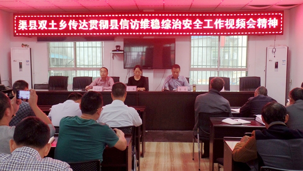 10月23日上午,双土乡传达贯彻县信访维稳综治安全工作视频会精神,乡村干部,乡属单位负责人,贫困村组的组长及网格员等参加会议。会议由乡长郑勇主持。