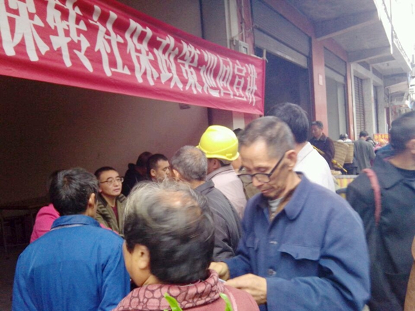 会后,参会人员在双土街道对赶集群众就农保转社保政策进行宣传并发放宣传资料,接受群众对农保转社保有关政策的咨询。(何佳沛)