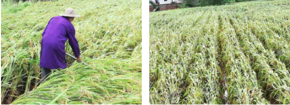 此次大暴雨,合力镇有1000余亩稻田被洪水淹没,洪水退后,成片的稻谷倒伏在地。合力镇党委及时组织村民进行秋收前自救,将倒伏的水稻捆绑成簇,亮行扶正,确保村民今年秋收有粮入仓,减少灾害损失。