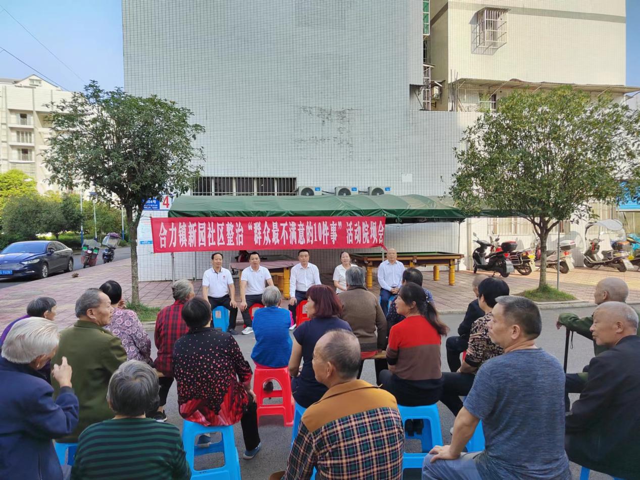 倾听群众心声,办好民生实事,反馈群众诉求,掷地有声地开展整治工作。2022年9月29日下午,我镇新园社区扎实召开“群众最不满意的10件事”院坝会。