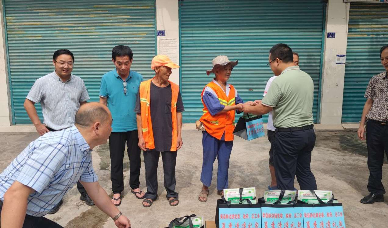 炎炎夏日送清凉,组织关怀沁人心。8月18日渠县静边镇党委书记丁旭带领党政、工会一班人赶赴村(社区)开展“夏送清凉”走访慰问活动。把防暑降温物品送到环卫工人、场镇管理人员等户外劳动者手中,把党和政府、工会组织的关怀送到基层。