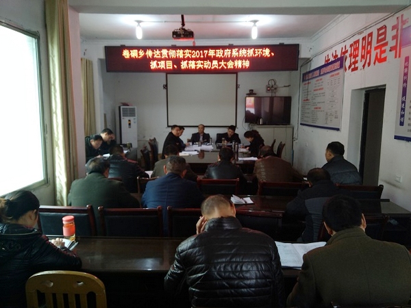 3月2日上午,卷硐乡召开传达2017年政府系统抓环境、抓项目、抓落实动员大会。乡全体机关干部,各村及社区书记、主任,乡属各部门负责人参加了会议。