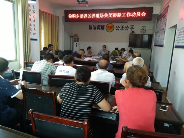 为切实推进卷硐乡畜禽养殖污染治理,根据《渠县养殖区域划分规定》的相关要求,8月2日,卷硐乡召开了禁养区养殖场关闭拆除工作动员会,参加会议的有乡政府分管畜牧和分管环保的领导,相关村村委会主任、部门负责人、两家需要关闭拆除的养殖业主及其他部分养殖场业主代表。