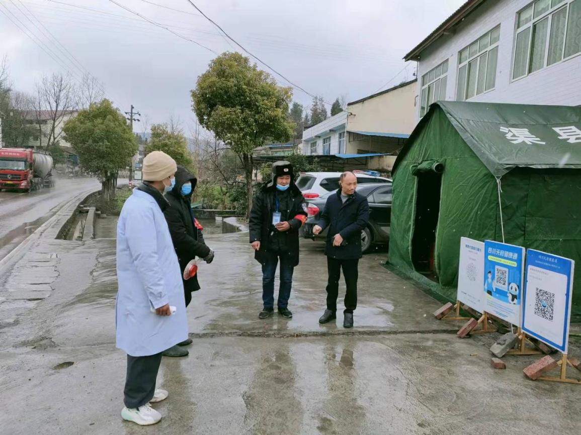 卷硐镇位于渠县东部,国道318线等纵贯全境,华新水泥、旺能发电位于辖区内,人员流动频繁,防控压力大。自12月26日起新一股寒潮席卷多地,渠县气温直逼0度,卷硐镇多地已出现积雪。不畏严寒,卷硐镇严格实行防控措施,在与大竹中华镇交界处设立卡点,组织政府工作人员、派出所民警、卫生院医护人员三班倒24小时值守,严格排查入境外地车辆,执行入渠防疫登记制度,及时报备和管控入渠外地人员,确保“外防输入”落实到位。