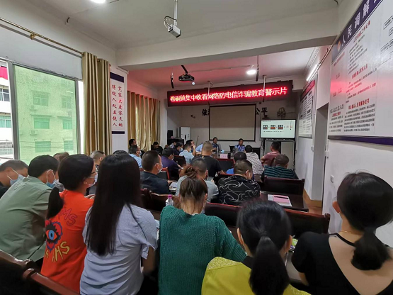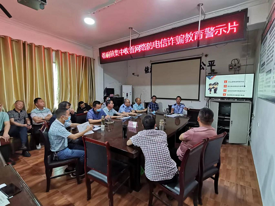 宣传培训分为三部分:一是集中观看《“反电诈”教育警示片》,深刻揭示电信诈骗和缅北诈骗窝点毒瘤危害;二是李波警官就“反电诈”进行专题培训,分别从电诈基本特征、常见诈骗手段、本地案例分析、骗术解密四大方面进行专题讲解;三是现场交流,镇村干部积极分享培训感悟,纷纷表示对电信诈骗有了更具体认识,对反电诈宣传工作有很好的指导作用,切实提高我镇反诈宣传实效。