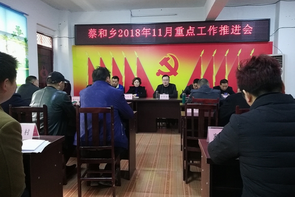 11月13日,蔡和乡组织召开2018年11月重点工作推进会,安排部署全乡11月重点工作,乡机关全体干部职工、各村(社区)支书、主任、第一书记、乡属单位负责人参加会议。