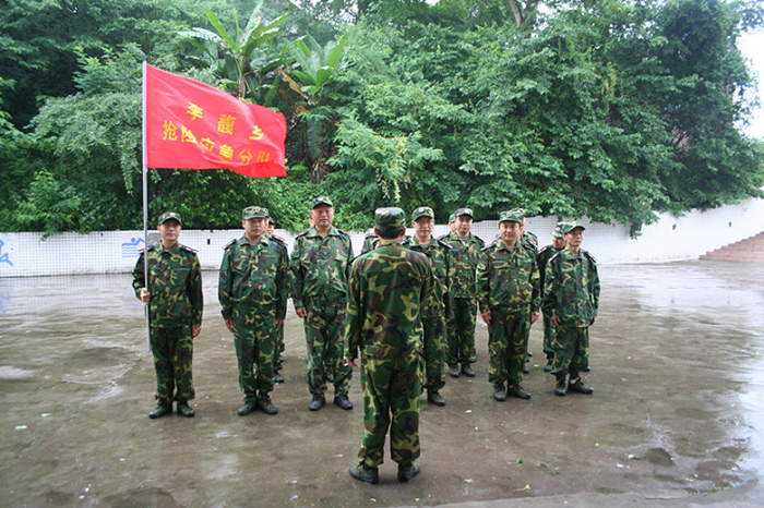 上午8:30分,在乡政府会议室举行了简短的乡独立抢险应急排的授旗仪式后,民兵们集结在李馥一小后操场首先进行了列队、站军姿、跑步等军事训练;随后又来到渠江河边进行了水上驾驶冲锋舟救援演练,11:30分演练结束。