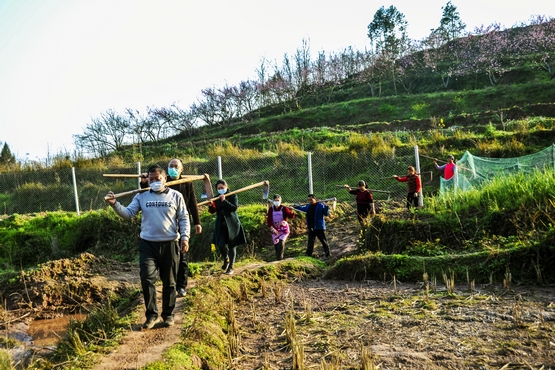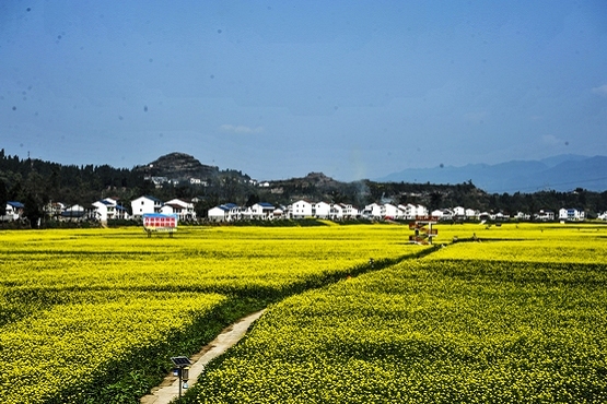 赏花人宅居盼郊游,村民游客圈里晒发花弄影。一群在蔬菜地里打工农民趁空隙拿出手机晒上一圈,下半年、明年来吧,叫你眼花缭乱、乐不思蜀。指导春耕生产的镇长何泓志随即助兴:山欢水笑翻金波,凤凰翩跹花舞艳;层叠播下希望种,惬意写满幸福脸;喜看菜花千重浪,遍地英雄下夕烟。(万绍荣 蒲渠林)