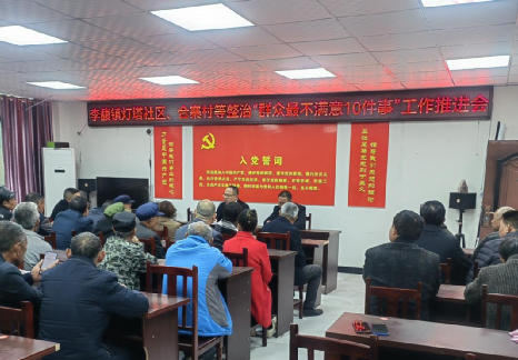 2023年4月15日上午李馥镇在灯塔社区会议室召开灯塔社区、合寨村等整治“群众最不满意10件事”工作推进会,参加会议的有两个村(社区)两委干部、相关诉求群众。