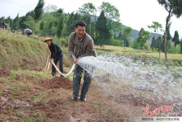 “间距要达到2米8到3米,株堆的泥巴要弄细点。”原来,这就是踏水村村支书陈龙山,他正和来自一个种植公司的技术员现场察看新种花椒的成活情况,在二社罗成光的地里向村民们强调关键技术。