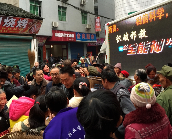 1月8日上午,为了全镇居民能过一个安定、祥和的春节,渠县县委防邪办与琅琊镇一起开展了一场声势浩大的反邪教集中宣传活动,活动以“崇尚科学,反对邪教”为主题,通过宣传车宣传防邪知识、散发宣传材料、发放宣传围裙、开展法律咨询、张贴标语等形式,倡导广大群众反对邪教、破除迷信、崇尚科学、传播文明。