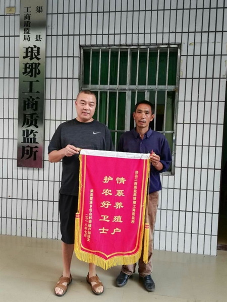 “感谢你们,真的太感谢你们了,工商质监部门是我们真正的贴心人!”近日,望溪乡包山村二组村民邹廷友来到琅琊工商质监所,将一面写着“情系养殖户,护农好卫士”的锦旗送到该所负责人的手上。