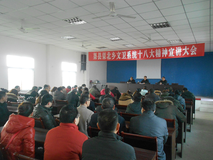 12月22日上午,渠北乡组织召开辖区学校、卫生院全体干部职工大会,集中宣讲十八大精神。