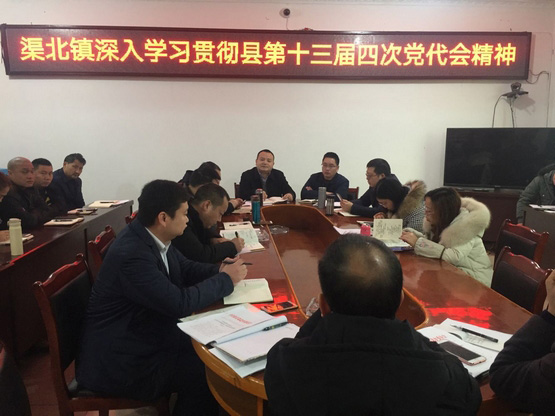 1月26日上午,渠北镇传达贯彻县十三届四次党代会精神。会议由镇党委书记朱长春主持,全体机关干部、各村社区书记、主任、第一书记及帮扶部门负责人参加会议。