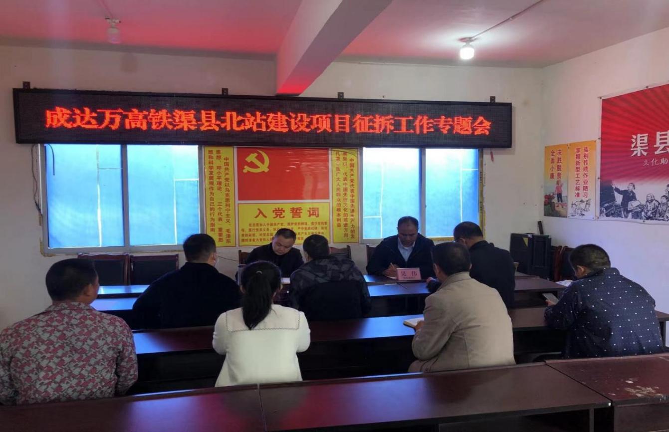 随即,张小毅同志组织相关人员在高寺社区会议室召开了成达万高铁渠县北站项目建设征拆工作专题推进会议。会议总结了前期征拆工作开展情况,深入分析存在的困难和问题,对下步工作进行了安排部署。