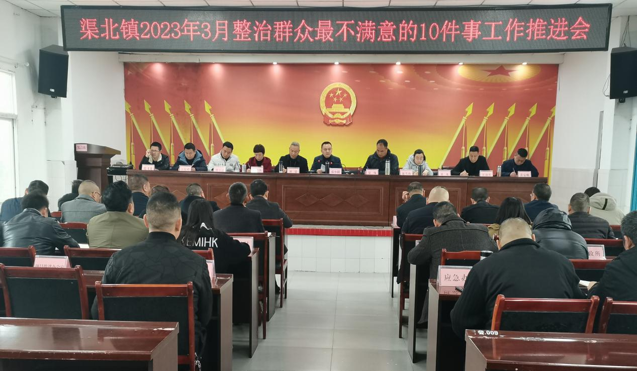 2023年3月2日上午,渠北镇组织召开整治“群众最不满意的10件事”工作推进会,镇机关全体工作人员、各村(社区)支部书记、主任参加会议。