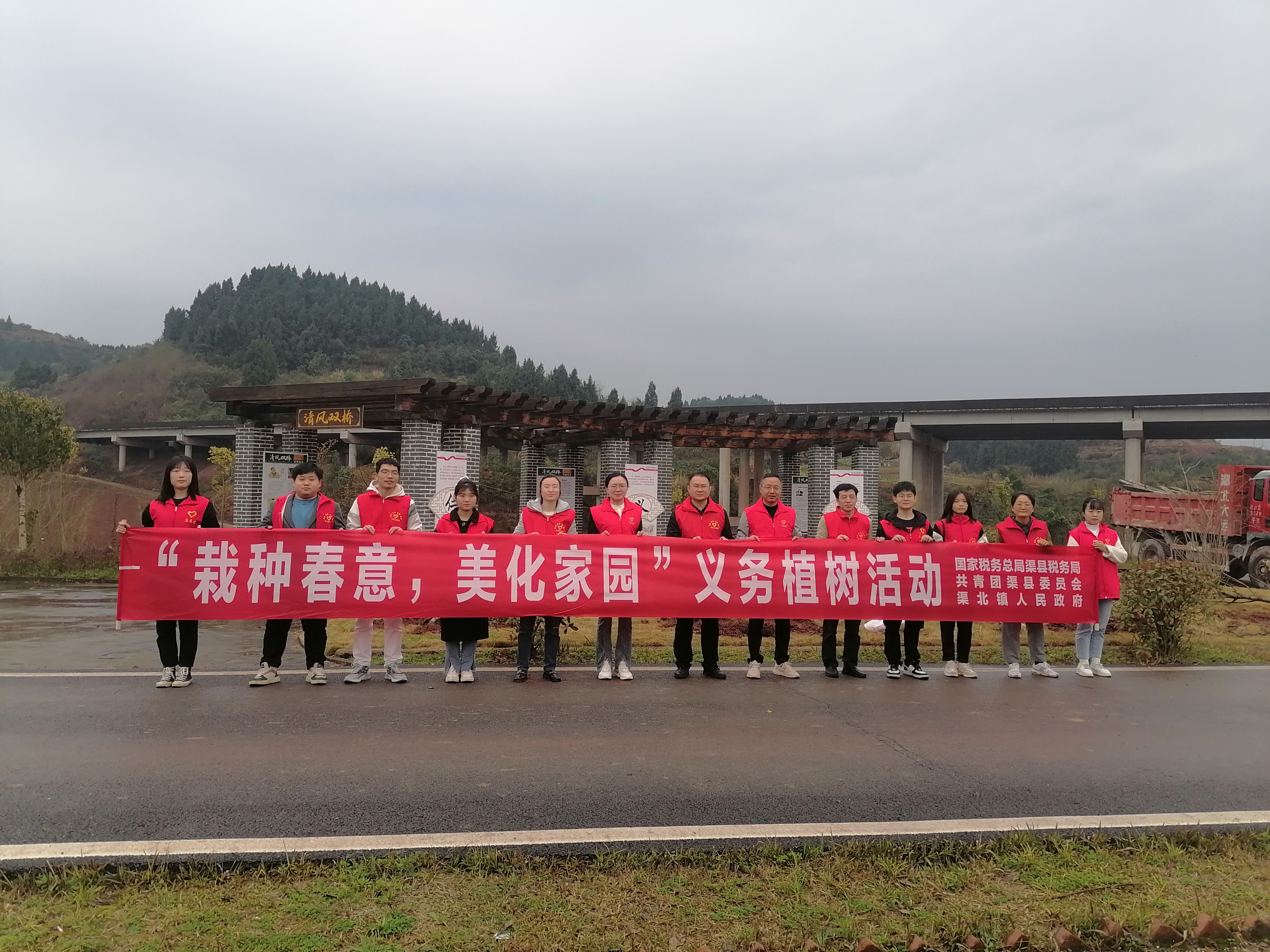 巴蜀春来早,植绿正当时。3月9日,渠北镇组织干部职工会同渠县税务局、共青团渠县委员会在双桥村积极开展义务植树造林活动。