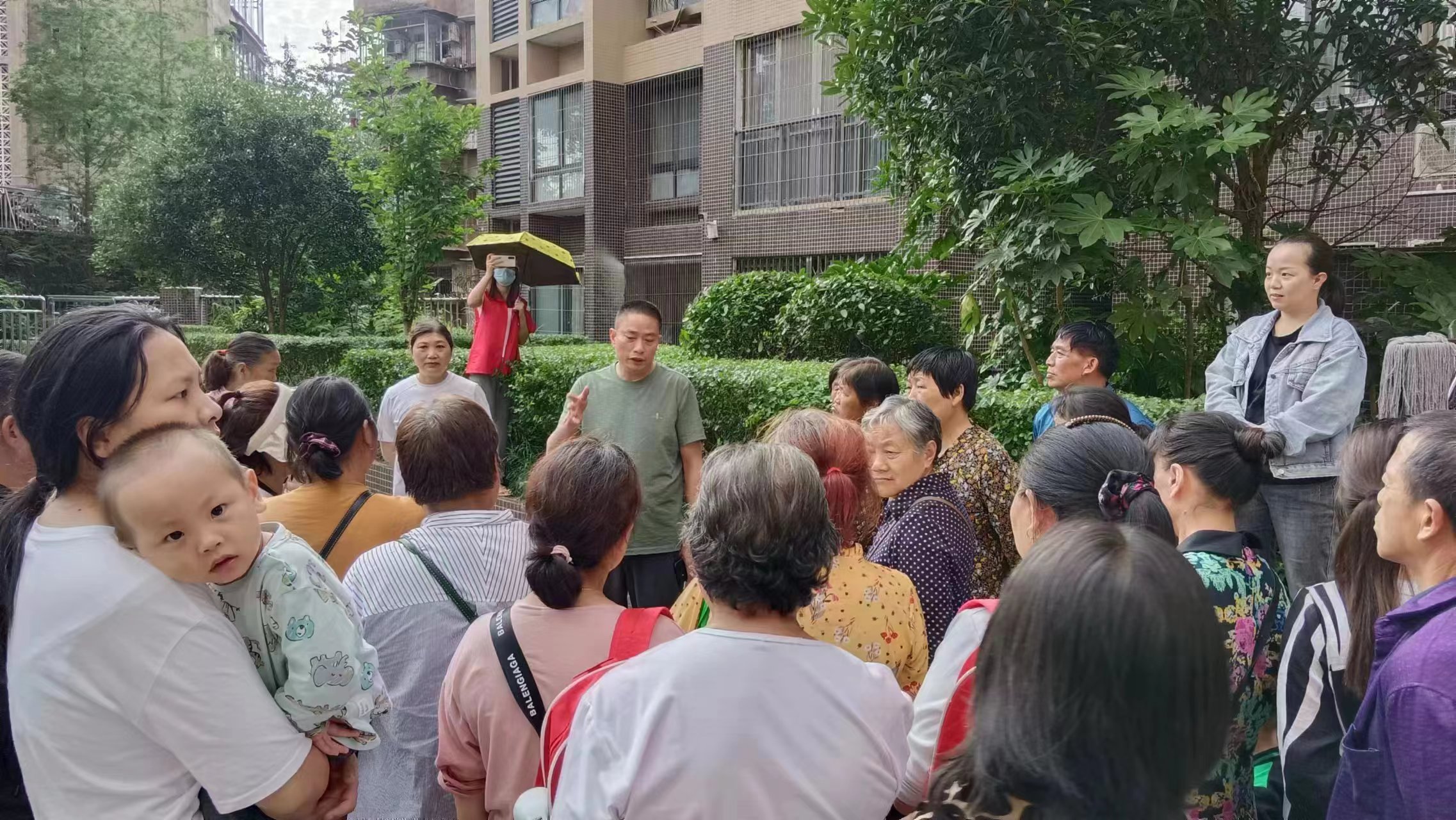 群众的事就是我们的事。社区党委书记向金奎得知群众诉求后,立即带领两委干部、网格员到现场开展群众诉求化解工作。一方面,组织人员入户走访了解居民意见,并逐一做好登记;二方面,及时组织物业、相关主管部门现场召开院坝会,反复向居民讲解物管法知识常识,让居民明白大修基金的性质、作用及拨付使用流程,进一步统一居民思想;三方面,充分发挥居民代表的作用,利用他们在居民当中的影响做好宣传带头示范作用,逐一化解居民矛盾;四方面,反复与物业公司负责人商议,动员其先行垫资维修,保证电梯立即开通运行。