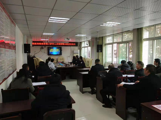 2022年1月19日,清溪场镇联合派出所组织全镇村社干部集中观看了缅北涉诈人员警示教育片并召开工作会。