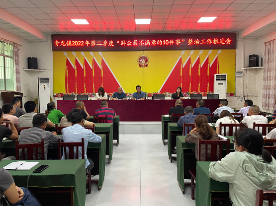 近日,青龙镇召开了整治“群众最不满意10件事”工作专题会议,党委书记周小飞部署了第二季度相关工作任务。青龙镇副书记周红梅主持会议。