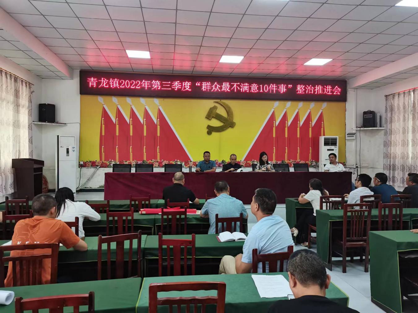 9.18日上午,青龙镇组织召开了2022年第三季度“群众最不满意的10件事”整治工作推进会,会议由党委书记周小飞主持,镇机关中层干部及各村(社区)书记、文书参加。