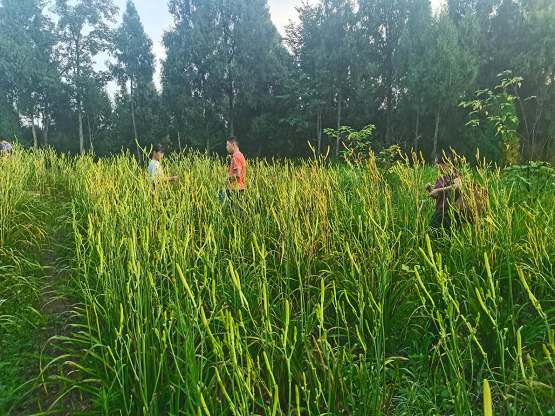 你看!学校刚放假,黄花地里就出现了孩子们的身影,其中有大学生、高中生和小学生。他们有的独自挎着篮子,一行行认真的采摘黄花;有的在母亲带领下学着大人的样子采摘黄花;有的孩子还唤来伙伴一同加入采摘队伍。在黄花地里他们忍受着蚊子扑面而来的侵扰,忍受着蚊虫的叮咬,忍受着叶子在身上划出一道道伤痕的疼痛……黄花带来的经济收入供养着孩子们生活和学习,解决了衣食住行的难题。父母们辛勤栽种黄花的精神品格也激励着孩子们茁壮成长。孩子们在黄花地里感受到了父母无私的爱,孩子们在黄花地里品味出了生活的艰辛,孩子们在黄花地里学习着劳动技能,孩子们在黄花地里收获着自食其力的快乐,孩子们在黄花地里锻炼出了坚韧不拔的品格……可以说:黄花是滋养孩子们成长的母亲花!