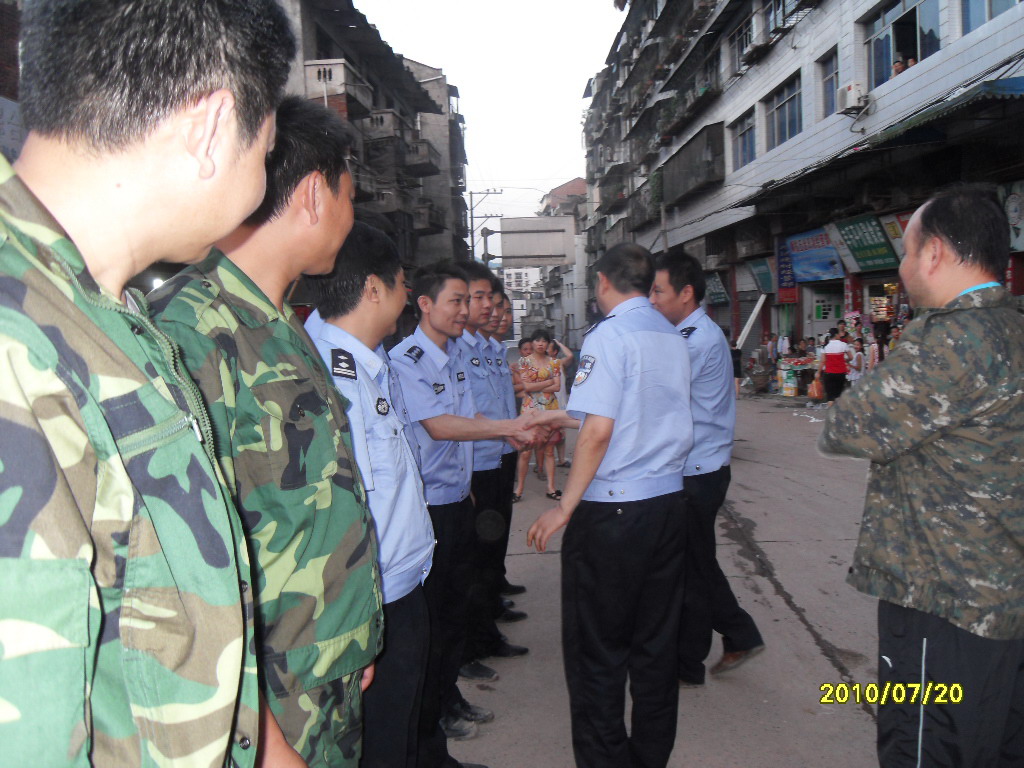 廖瑞山赴三汇看望民兵干部和公安民警 字体:大 小 打印 关闭本页 作者: 来源:本站原创 发布时间:2010-07-22 13:53:36 点击数: 扫一扫下载渠县网APP 分享 分享到: 7月20日19时,洪水刚刚消退,县公安局党委书记、局长廖瑞山到“7.18”洪灾重灾区三汇镇看望在抗洪抢险第一线的民兵干部和公安干警。 廖瑞山同志亲切慰问民兵干部和公安干警 廖瑞山同志仔细地询问灾情和灾区治安状况 三汇镇委书记孙小雁同志介绍抢险突击队救灾情况 廖瑞山同志慰问正在值勤的民警